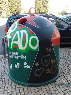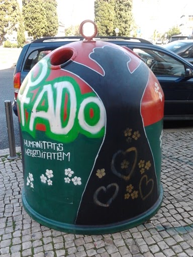 Continuo encantada com a arte nos vidrões que vou encontrando por Lisboa. Sempre que me aparece um pela frente, não me escapa. A iniciativa é da GAU - Galeria de Arte Urbana, da Câmara Municipal de Lisboa e envolveu inúmeros artistas plásticos. Quem estiver interessado em saber mais pode ir a