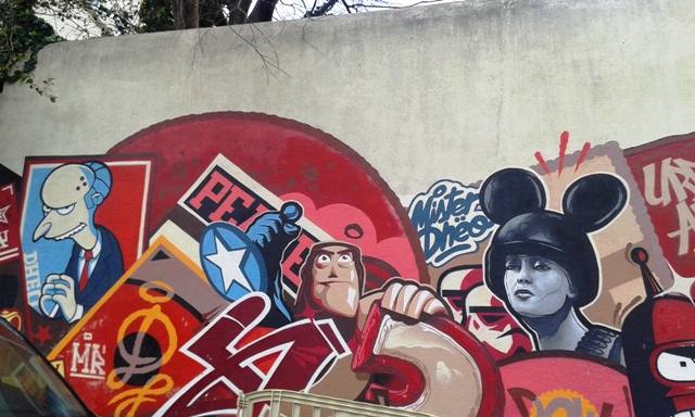 Mesmo ao lado do edifício da Voz do Operário, há um curioso mural. O tema é revolucionário e alusivo ao 25 de Abril, mas utiliza personagens infantis porque está junto a uma escola.