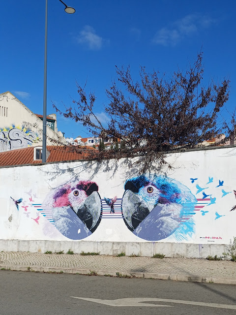 Este eléctrico está parado junto às Amoreiras. Mas não é um eléctrico qualquer. Trata-se de uma iniciativa de arte urbana, tendo no seu interior uma obra de Bordalo II.